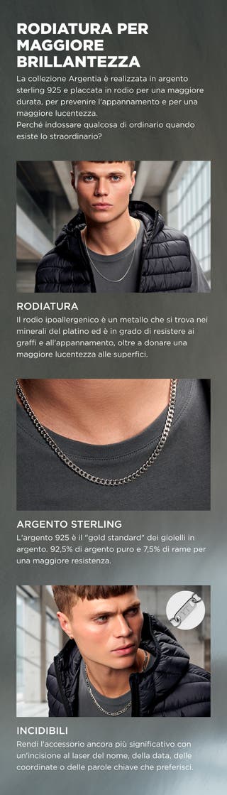 Argentia | 925s | Collana a catena da 2 mm in argento Sterling placcato in rodio