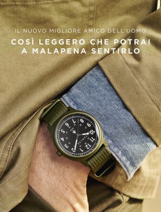 Cinturino NATO, movimento Seiko, vetro zaffiro bombato, lancette e numeri Super-LumiNova, cassa leggera in alluminio