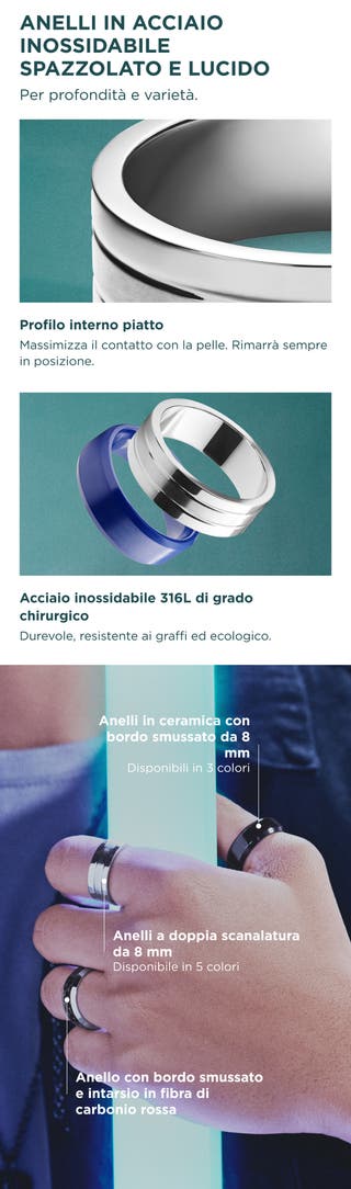 Scegli il colore - Ferrum | Anello flat a doppia scanalatura in acciaio inossidabile lucido e spazzolato color argento da 8 mm